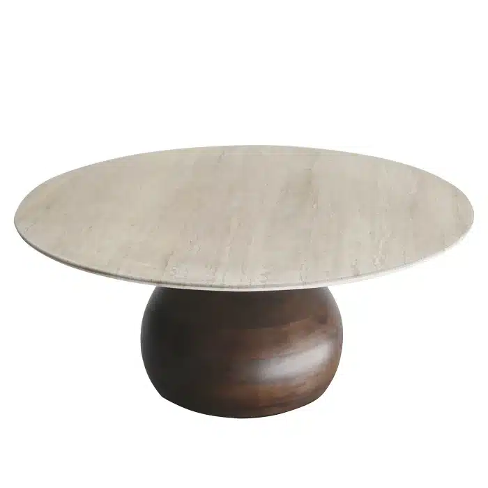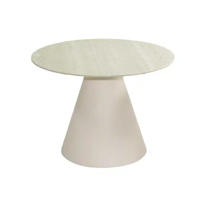 פלטה עליונה חלקה עם טקסטורות עדינות והיא נתמכת על ידי בסיס קוני מרכזי שמתחדד כלפי מטה.
