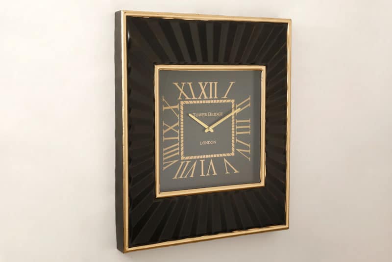 שעון קיר FONTAINE בצבע שחור זהב במידות 60X70X6
