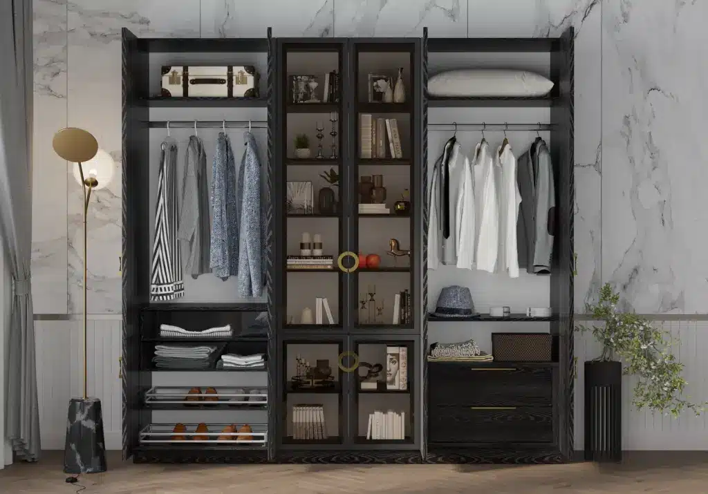 ארון בעיצוב מודרני ונקי, מיוצר בהתאמה אישית ממלמין יצוק איכותי ועמיד. חזית אלגנטית בקווים ישרים המעניקה מראה יוקרתי ומסודר לכל חלל. הארון מיוצר לפי מידה, וניתן לבחור את התכנון הפנימי – מדפים, מגירות ואזורי תלייה – באמצעות יצירת קשר עם החנות, להתאמה מושלמת לצרכים שלכם.