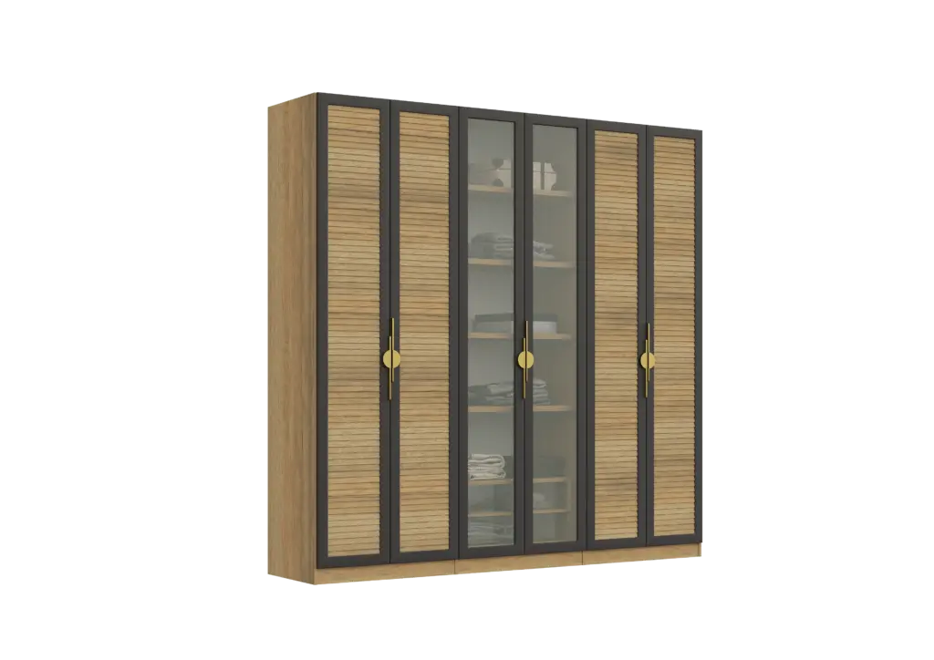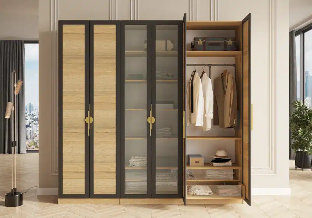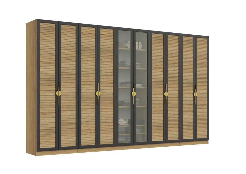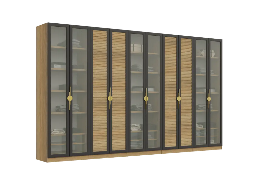 ארון בעיצוב מודרני ונקי, מיוצר בהתאמה אישית ממלמין יצוק איכותי ועמיד. חזית אלגנטית בקווים ישרים המעניקה מראה יוקרתי ומסודר לכל חלל. הארון מיוצר לפי מידה, וניתן לבחור את התכנון הפנימי – מדפים, מגירות ואזורי תלייה – באמצעות יצירת קשר עם החנות, להתאמה מושלמת לצרכים שלכם.