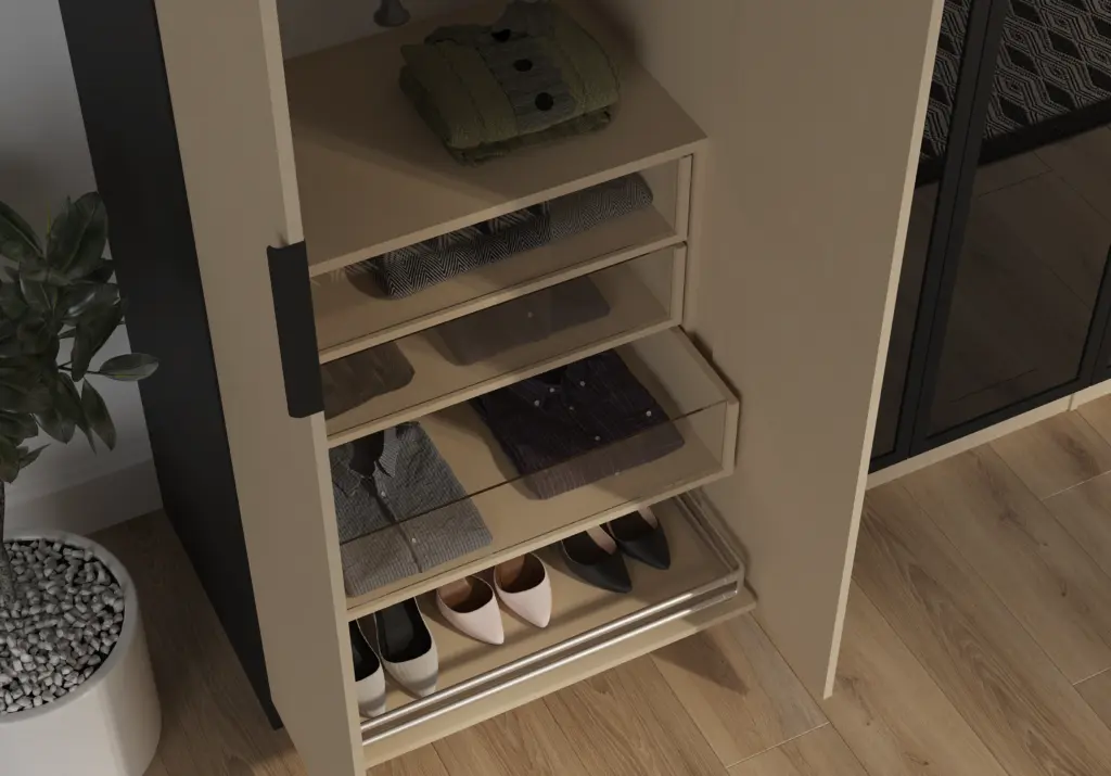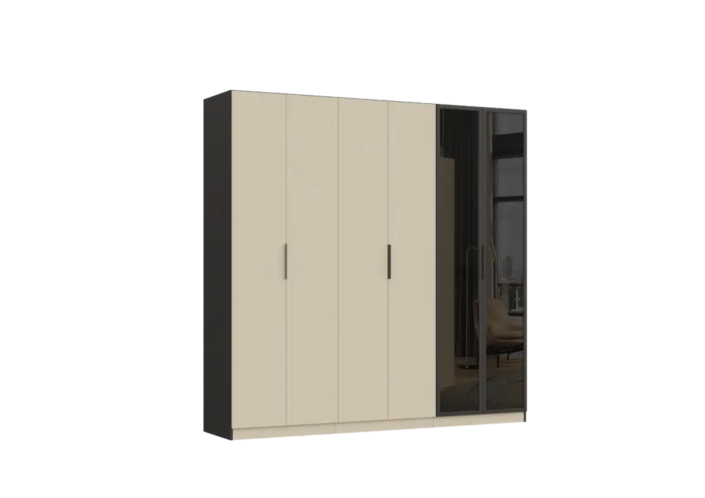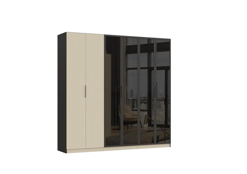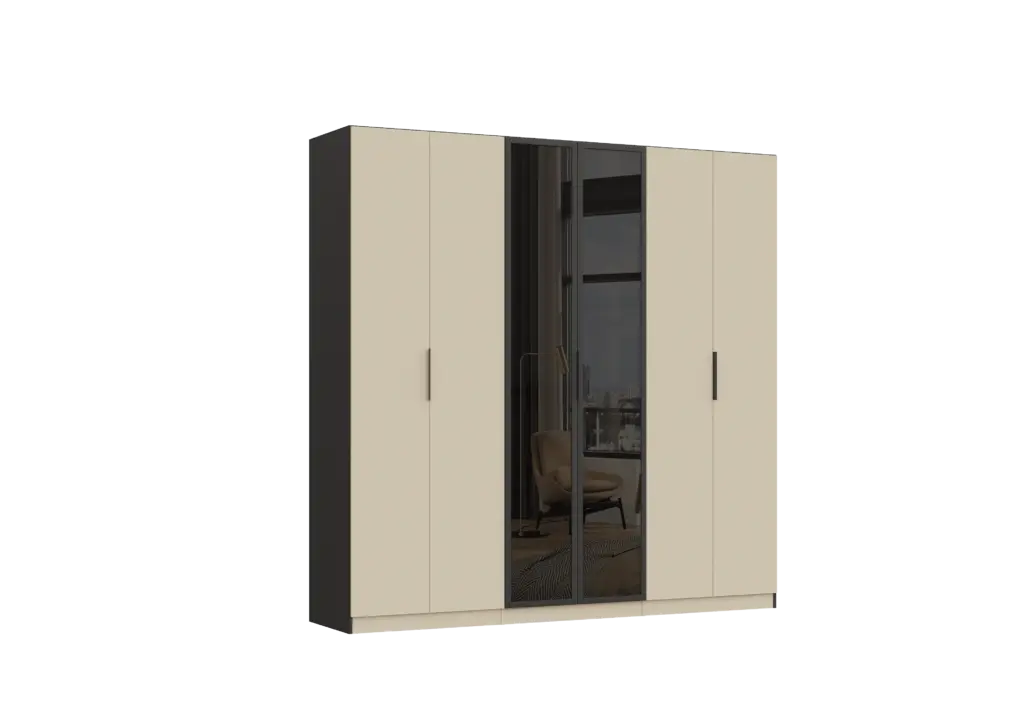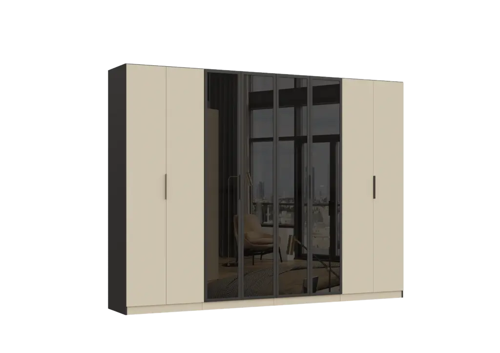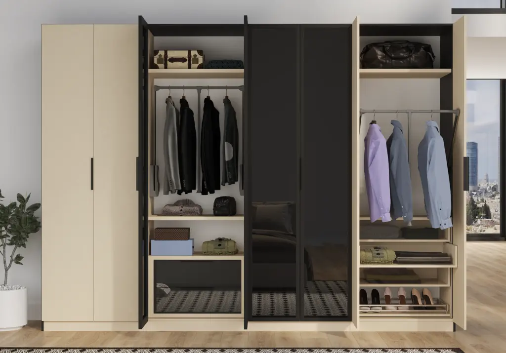 ארון בעיצוב מודרני ונקי, מיוצר בהתאמה אישית ממלמין יצוק איכותי ועמיד. חזית אלגנטית בקווים ישרים המעניקה מראה יוקרתי ומסודר לכל חלל. הארון מיוצר לפי מידה, וניתן לבחור את התכנון הפנימי – מדפים, מגירות ואזורי תלייה – באמצעות יצירת קשר עם החנות, להתאמה מושלמת לצרכים שלכם.