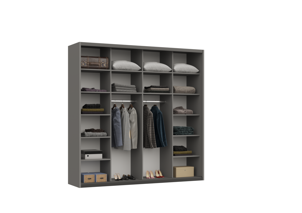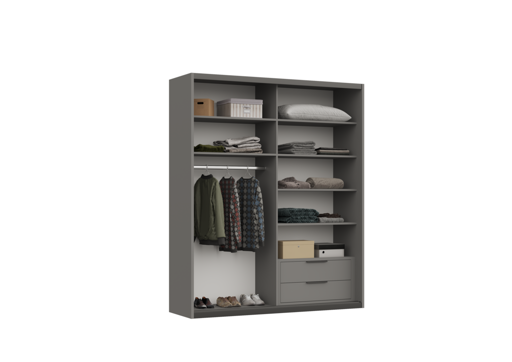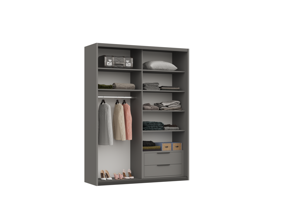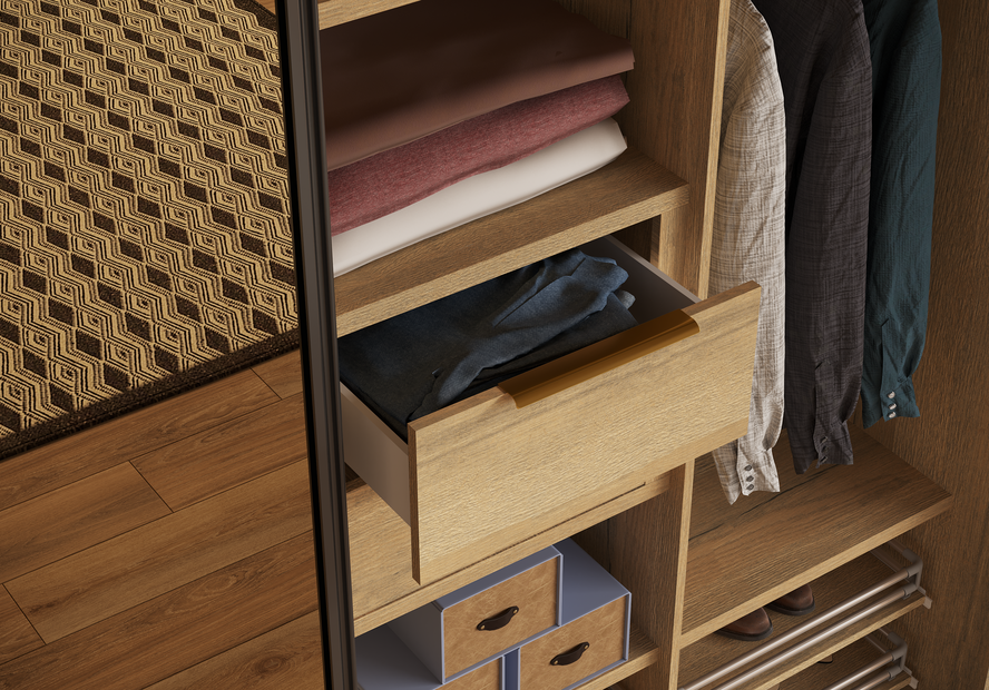 ארון בעיצוב מודרני ונקי, מיוצר בהתאמה אישית ממלמין יצוק איכותי ועמיד. חזית אלגנטית בקווים ישרים המעניקה מראה יוקרתי ומסודר לכל חלל. הארון מיוצר לפי מידה, וניתן לבחור את התכנון הפנימי – מדפים, מגירות ואזורי תלייה – באמצעות יצירת קשר עם החנות, להתאמה מושלמת לצרכים שלכם.