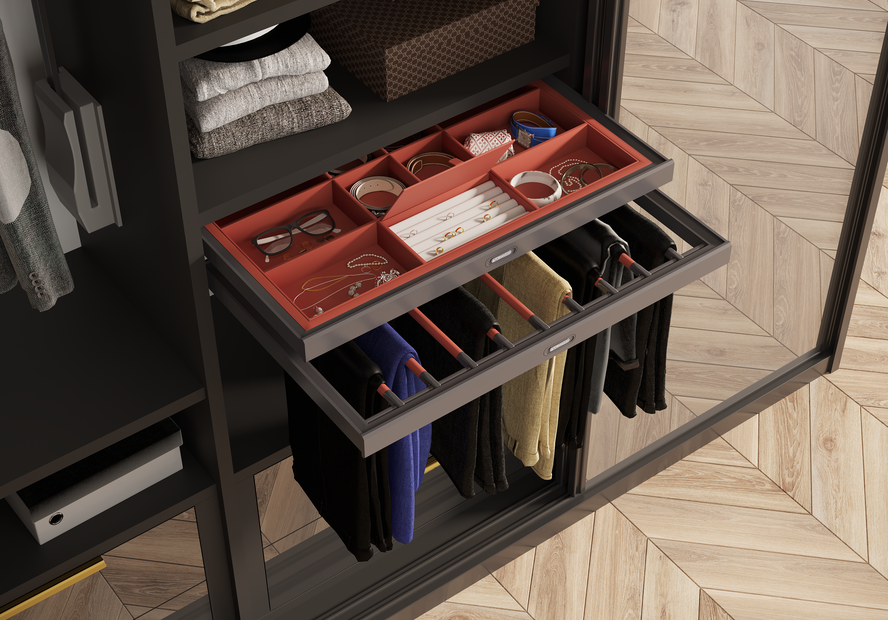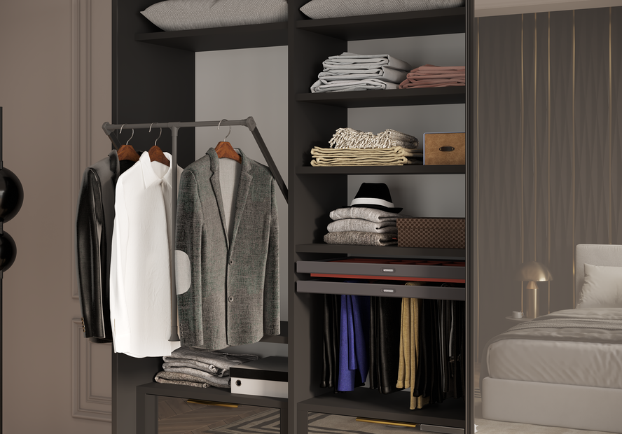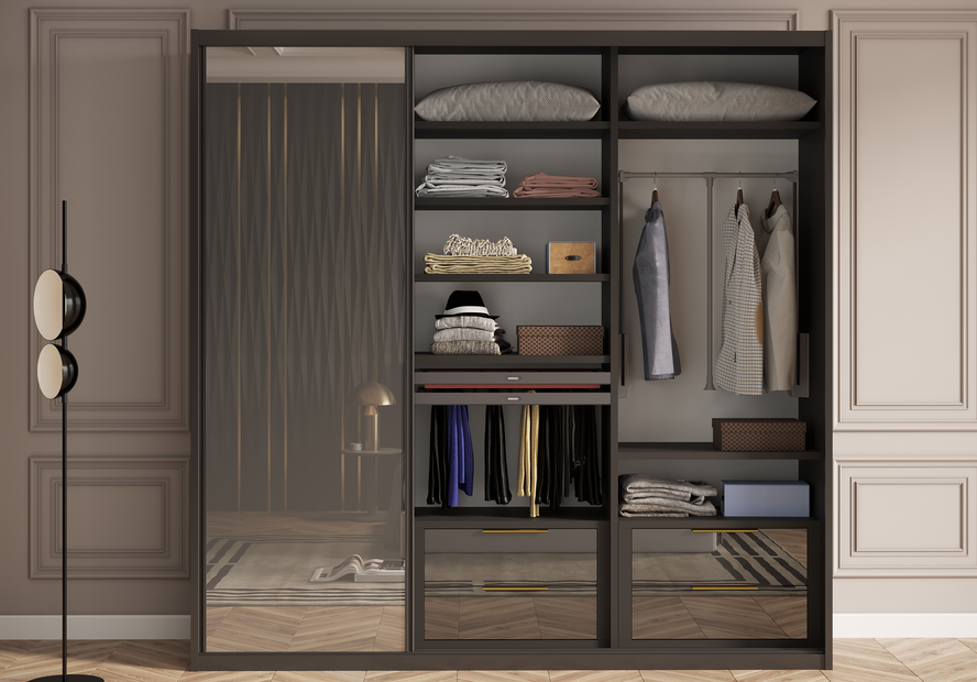 ארון בעיצוב מודרני ונקי, מיוצר בהתאמה אישית ממלמין יצוק איכותי ועמיד. חזית אלגנטית בקווים ישרים המעניקה מראה יוקרתי ומסודר לכל חלל. הארון מיוצר לפי מידה, וניתן לבחור את התכנון הפנימי – מדפים, מגירות ואזורי תלייה – באמצעות יצירת קשר עם החנות, להתאמה מושלמת לצרכים שלכם.