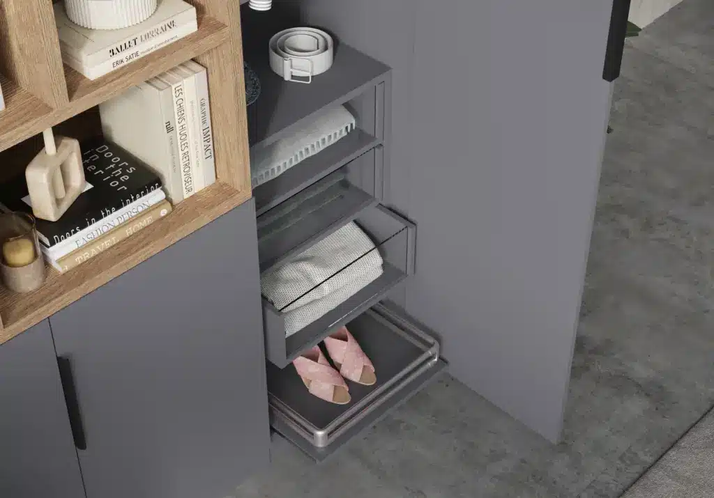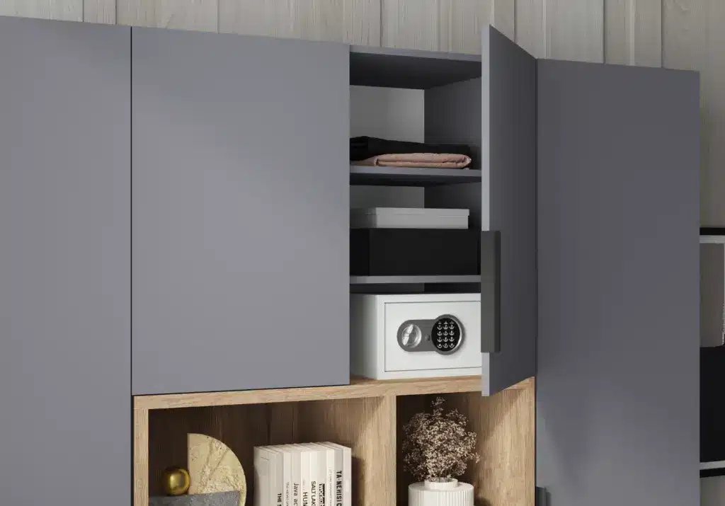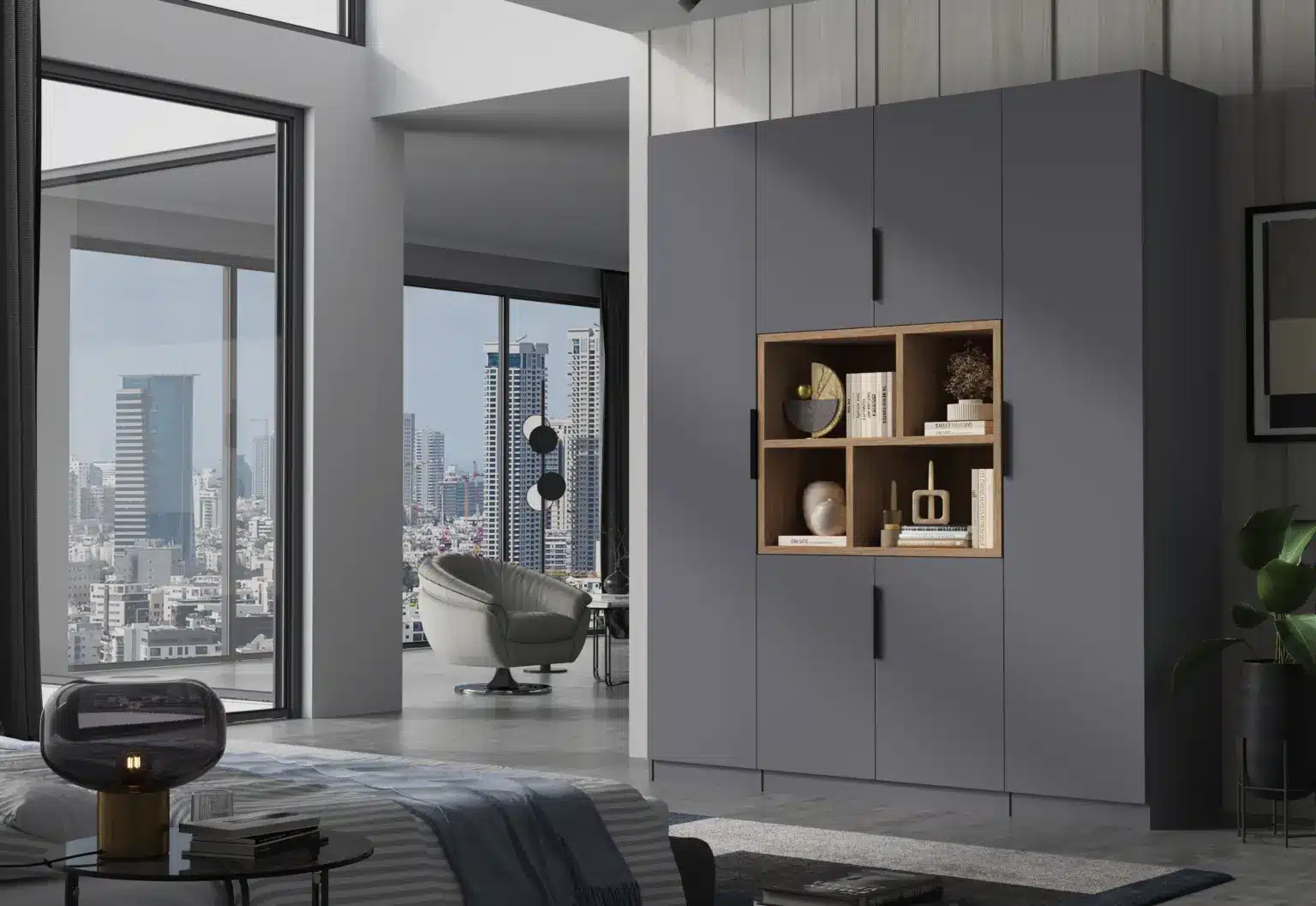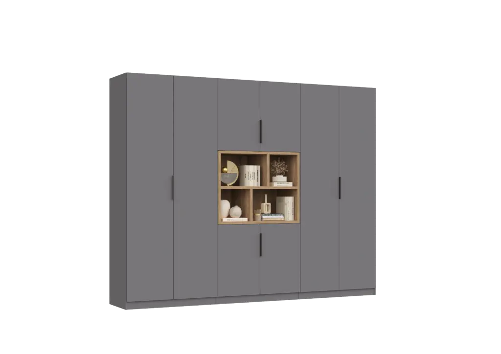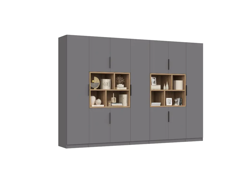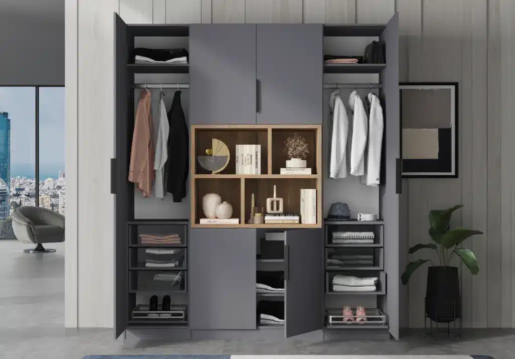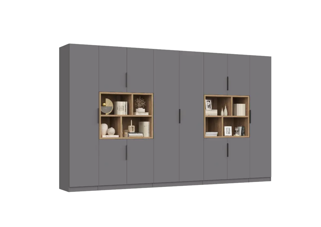 ארון בעיצוב מודרני ונקי, מיוצר בהתאמה אישית ממלמין יצוק איכותי ועמיד. חזית אלגנטית בקווים ישרים המעניקה מראה יוקרתי ומסודר לכל חלל. הארון מיוצר לפי מידה, וניתן לבחור את התכנון הפנימי – מדפים, מגירות ואזורי תלייה – באמצעות יצירת קשר עם החנות, להתאמה מושלמת לצרכים שלכם.