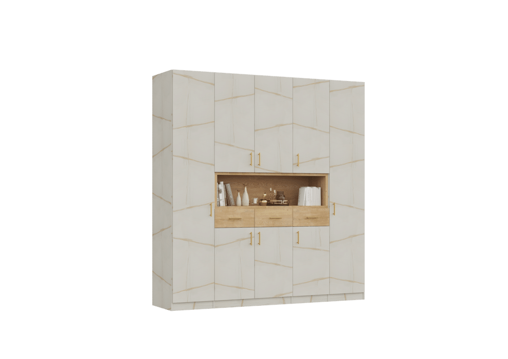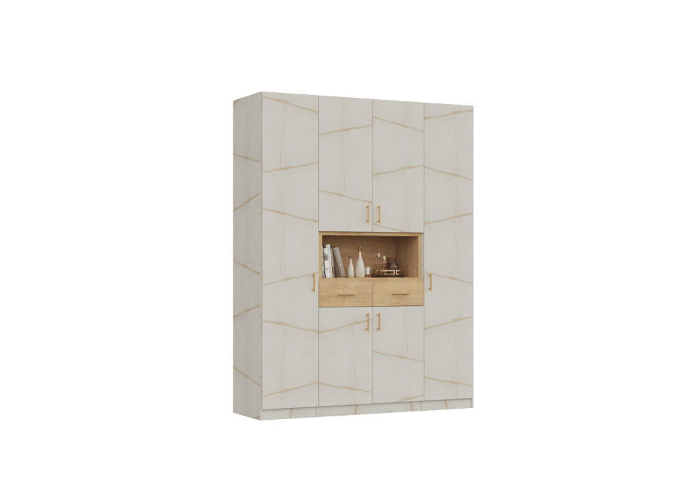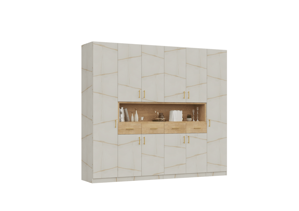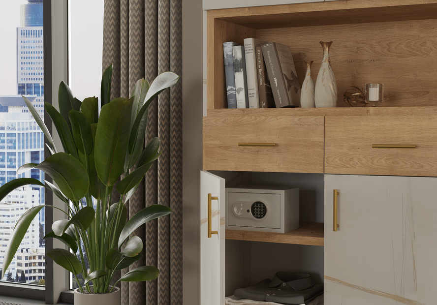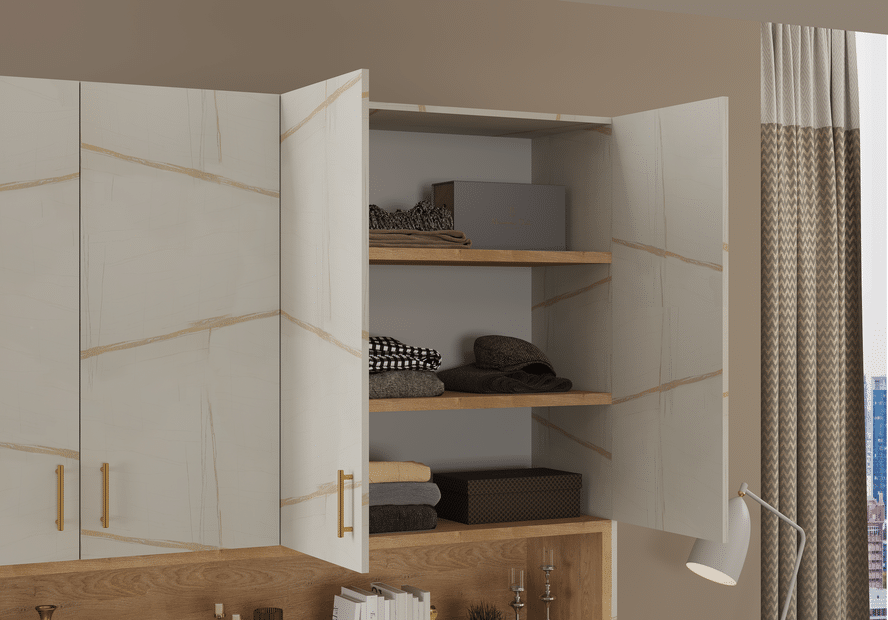 ארון בעיצוב מודרני ונקי, מיוצר בהתאמה אישית ממלמין יצוק איכותי ועמיד. חזית אלגנטית בקווים ישרים המעניקה מראה יוקרתי ומסודר לכל חלל. הארון מיוצר לפי מידה, וניתן לבחור את התכנון הפנימי – מדפים, מגירות ואזורי תלייה – באמצעות יצירת קשר עם החנות, להתאמה מושלמת לצרכים שלכם.