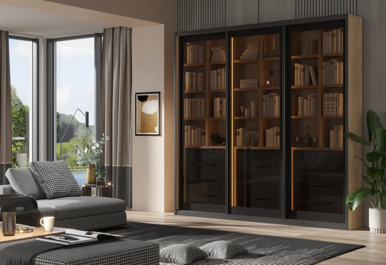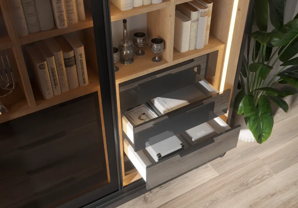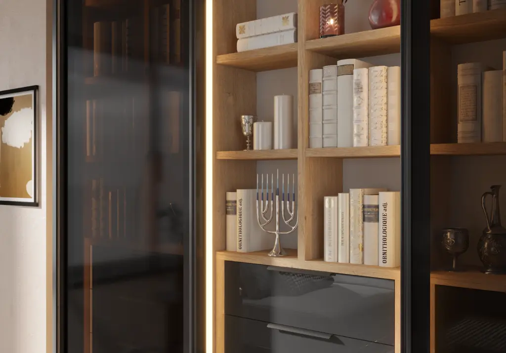 ארון בעיצוב מודרני ונקי, מיוצר בהתאמה אישית ממלמין יצוק איכותי ועמיד. חזית אלגנטית בקווים ישרים המעניקה מראה יוקרתי ומסודר לכל חלל. הארון מיוצר לפי מידה, וניתן לבחור את התכנון הפנימי – מדפים, מגירות ואזורי תלייה – באמצעות יצירת קשר עם החנות, להתאמה מושלמת לצרכים שלכם.