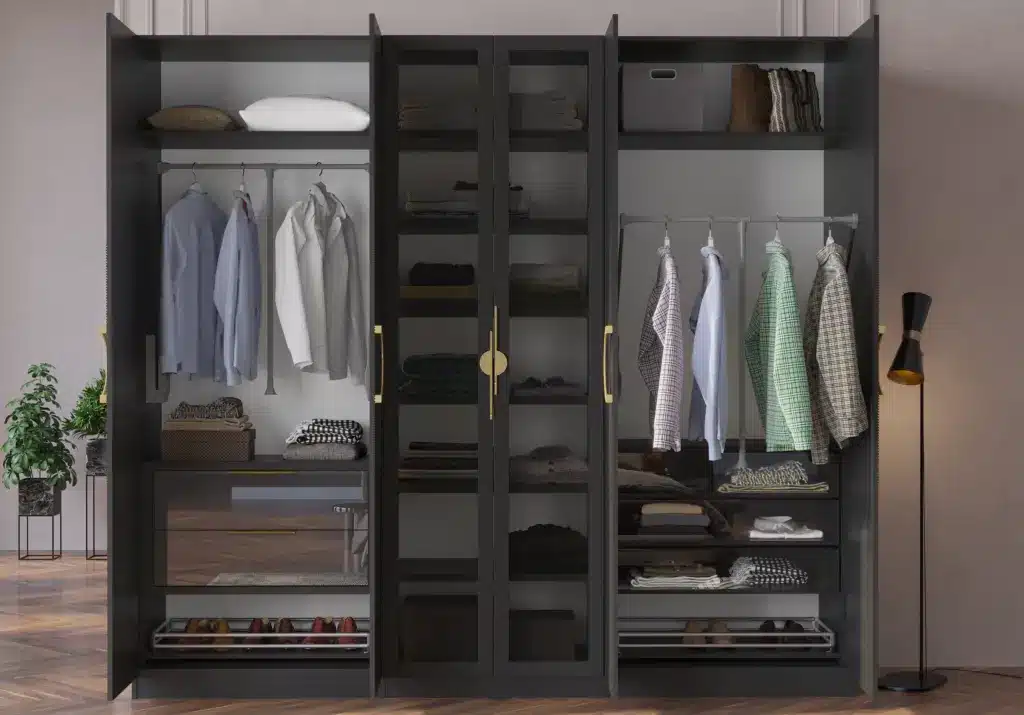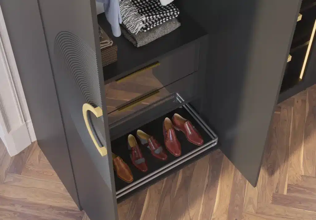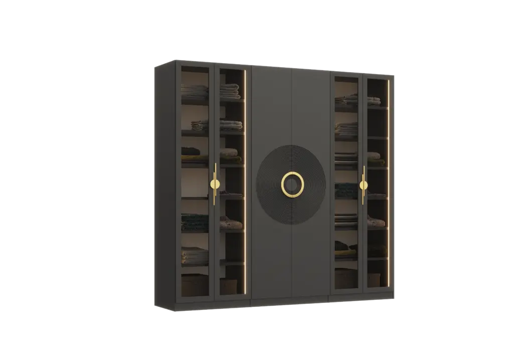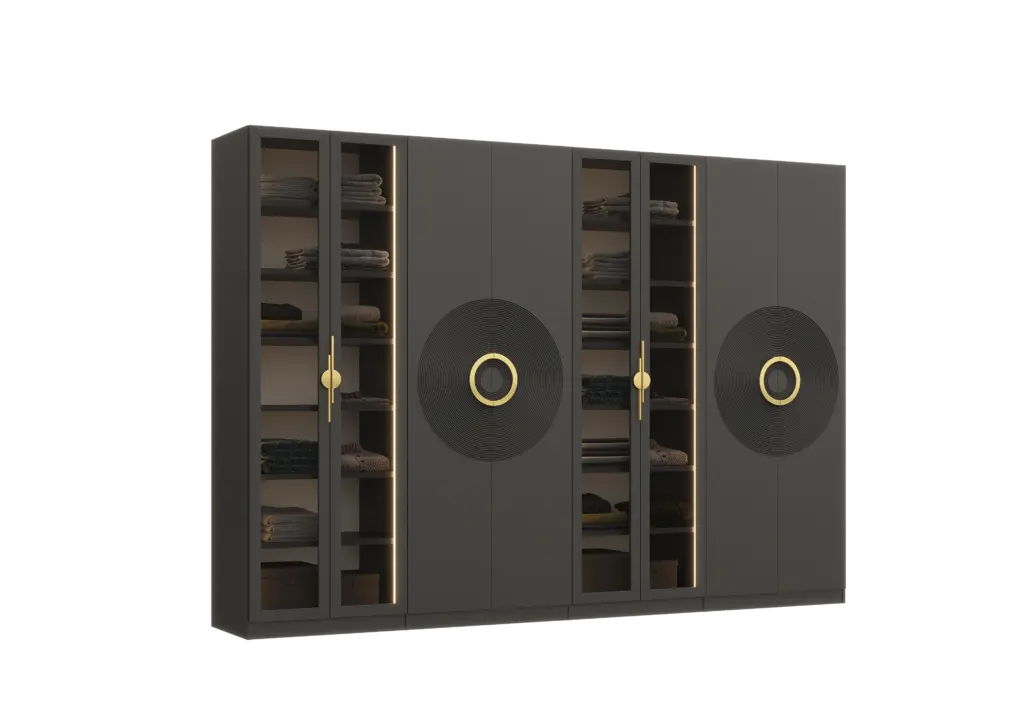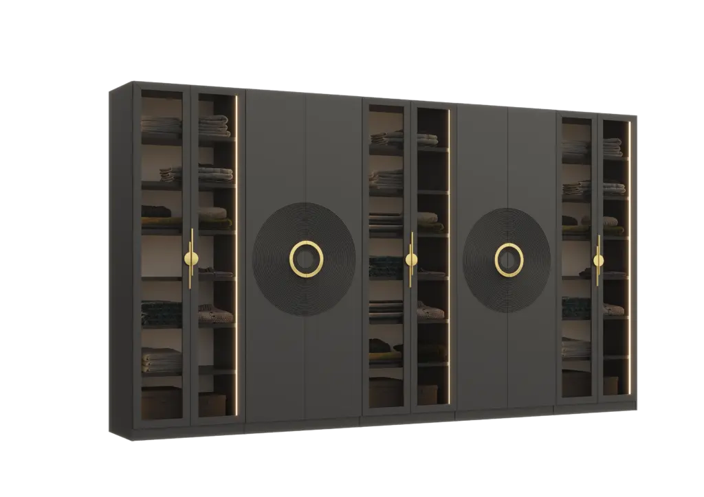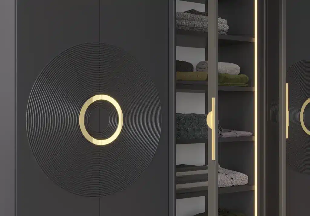 ארון בעיצוב מודרני ונקי, מיוצר בהתאמה אישית ממלמין יצוק איכותי ועמיד. חזית אלגנטית בקווים ישרים המעניקה מראה יוקרתי ומסודר לכל חלל. הארון מיוצר לפי מידה, וניתן לבחור את התכנון הפנימי – מדפים, מגירות ואזורי תלייה – באמצעות יצירת קשר עם החנות, להתאמה מושלמת לצרכים שלכם.