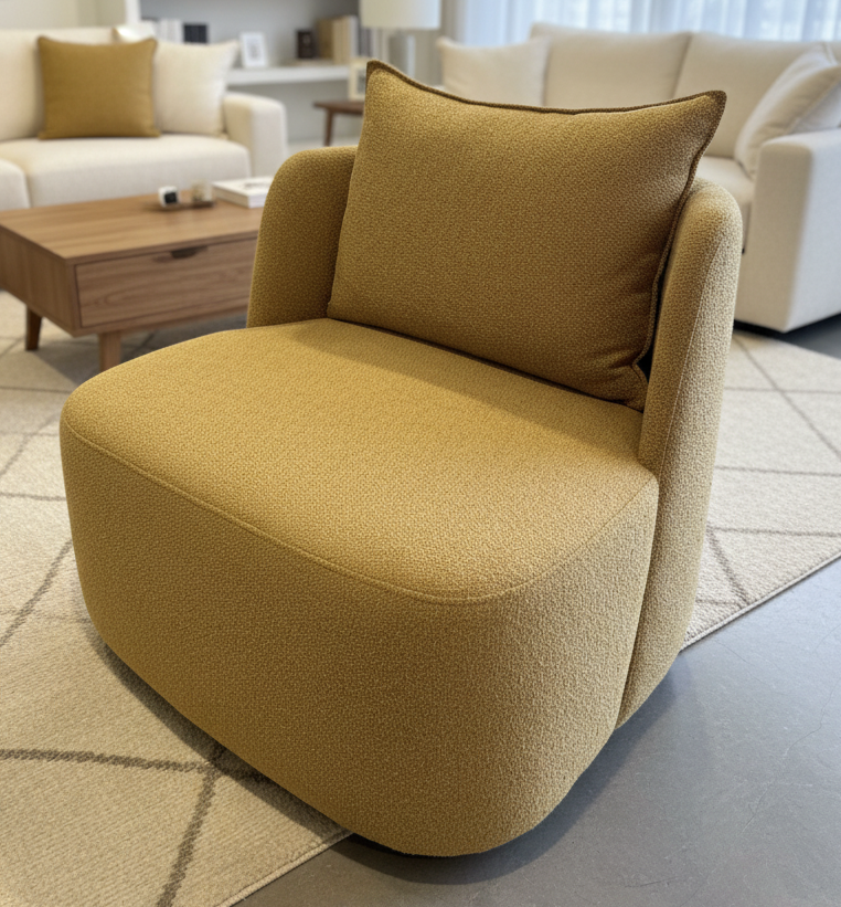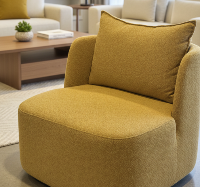 כורסא דומו במידות 84/68/75 ס״מ, עם פרופורציות שמעניקות לה מראה מאוזן ונעים לעין, והיא משתלבת בצורה מסודרת וברורה בתוך חלל הישיבה.