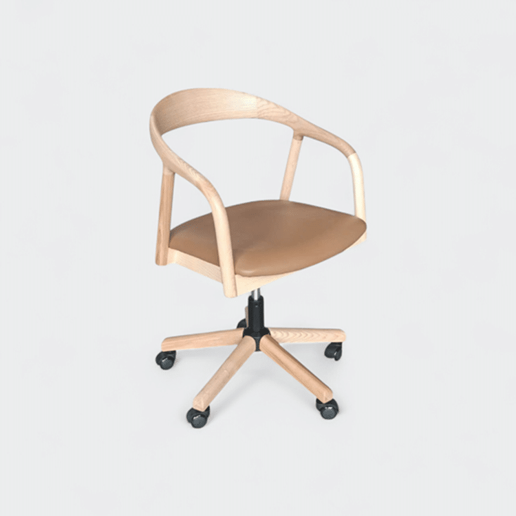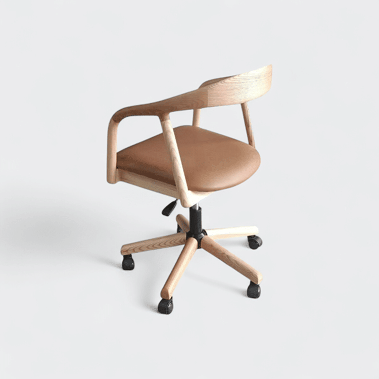 ועץ בהיר עם מושב דמוי עור קאמל – לוק הקלאסי, השקט והחמים.