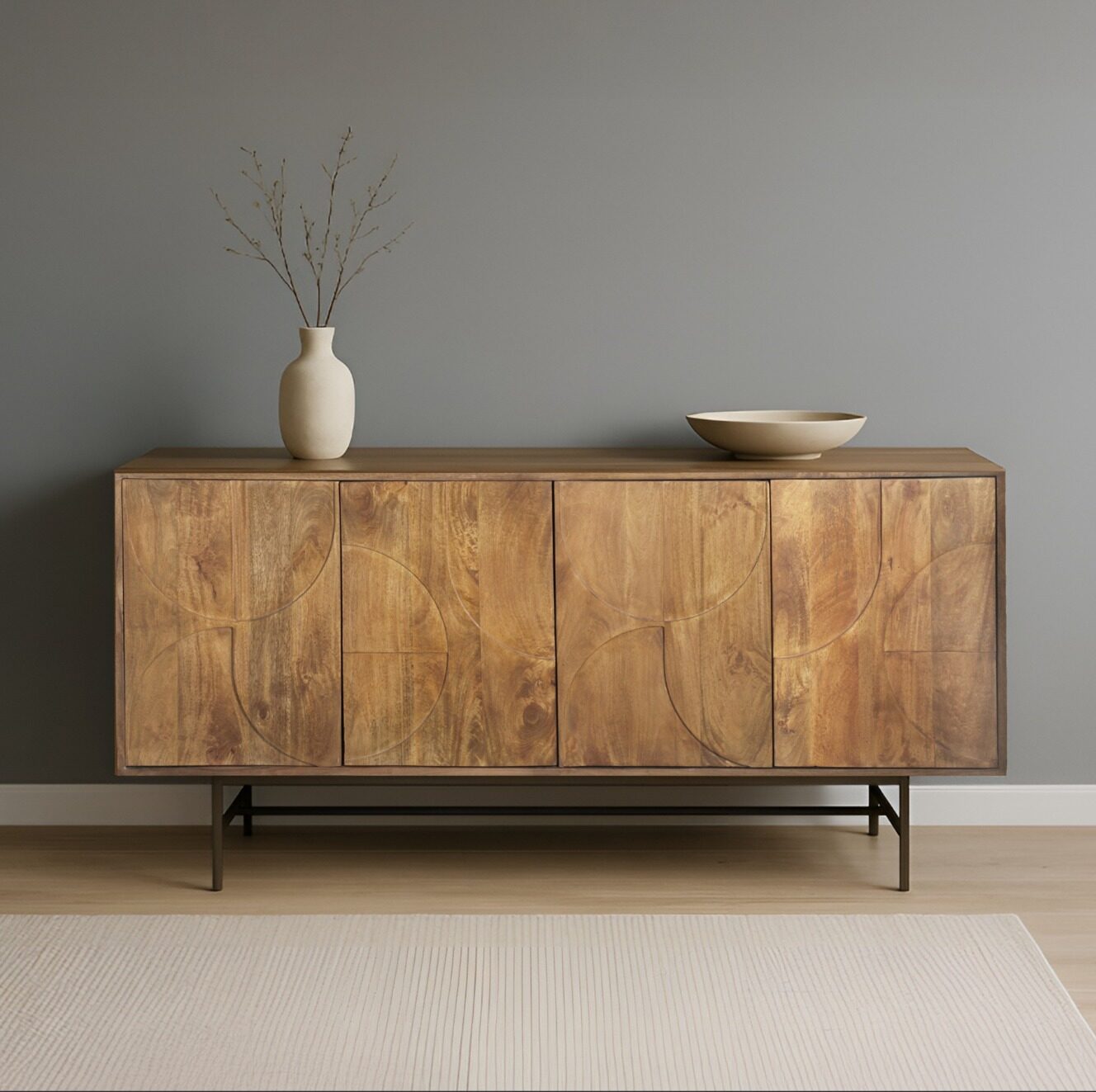 מזנון דגם רויאל בעל ארבע דלתות בגוון טבעי, המשלב פונקציונליות ועיצוב קלאסי. המזנון מיועד לאחסון מגוון פריטים ומציע פתרון מסודר ונוח לחלל הסלון או פינת האוכל. מידותיו 175/40/80 ס״מ, המאפשרות נוכחות מרשימה אך מאוזנת בחלל, והעיצוב הקלאסי שלו משתלב באופן טבעי עם רהיטים אחרים, תוך יצירת מראה מסודר והרמוני.