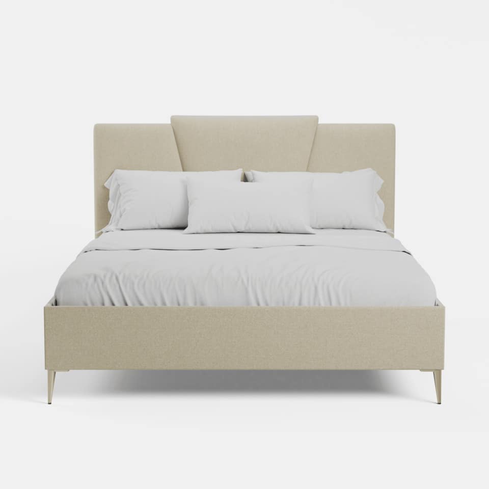 הבד בגוון חול-זהוב משדר חמימות יוקרתית, והשילוב עם רגלי המתכת המוזהבות, מקפיץ את הלוק לרמה של תכשיט בחלל.