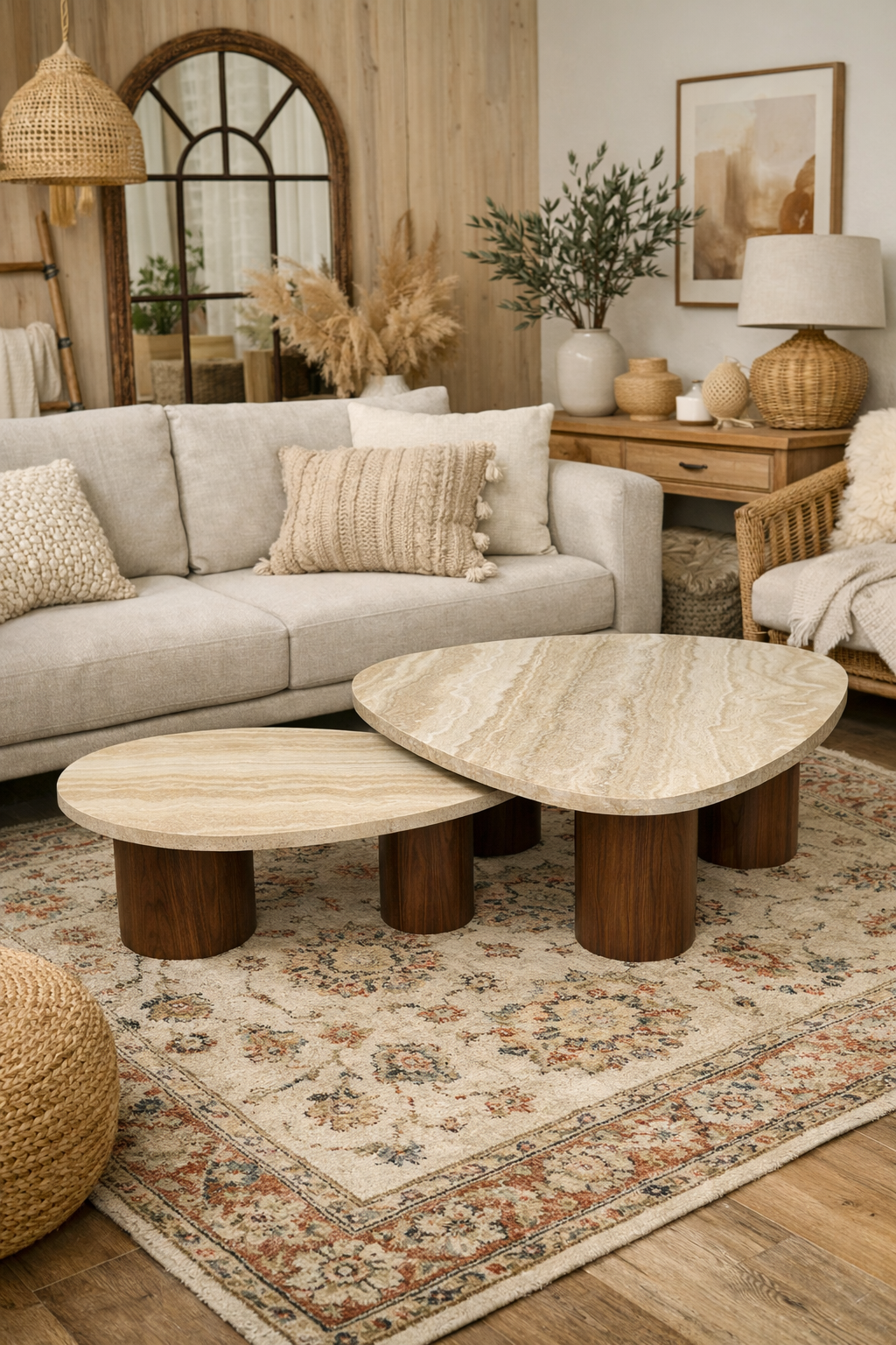 עיצוב חכם וורסטילי שחוסך מקום – השולחנות נכנסים אחד בתוך השני ומתאימים את עצמם למרחב הסלון והצורך שלך 👌