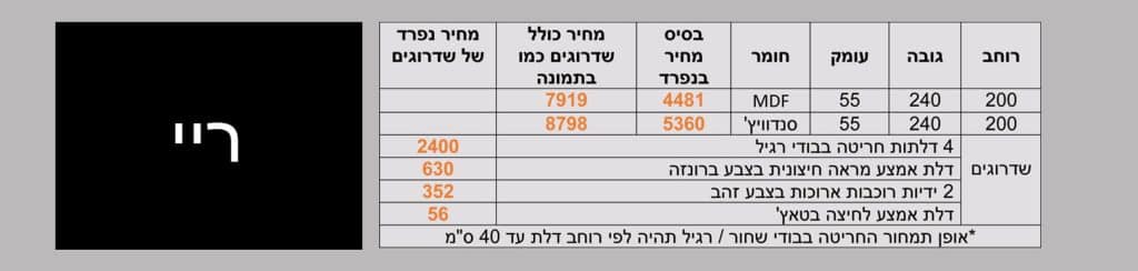*(במידה ובחרתם באופציה הובלה והרכבה ולא באופציה של איסוף עצמי)