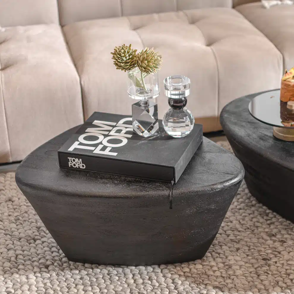 שולחן עץ מנגו אורגני פרופיל אמורפי בצבע שחור. רהיט מעוצב מעץ גושני מקשה אחת, בעל פרופיל אמורפי ייחודי בקו אותנטי־עכשווי. שולחן שהוא PIECE אמיתי למביני עניין, המכניס עומק ואופי לכל חלל.