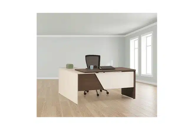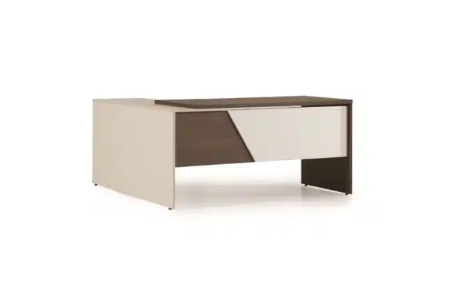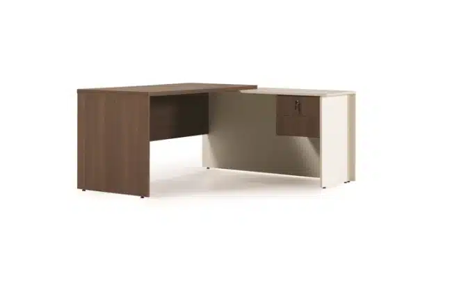 שולחן מלמין עם שלוחה המכילה 2 מגירות צמודות
