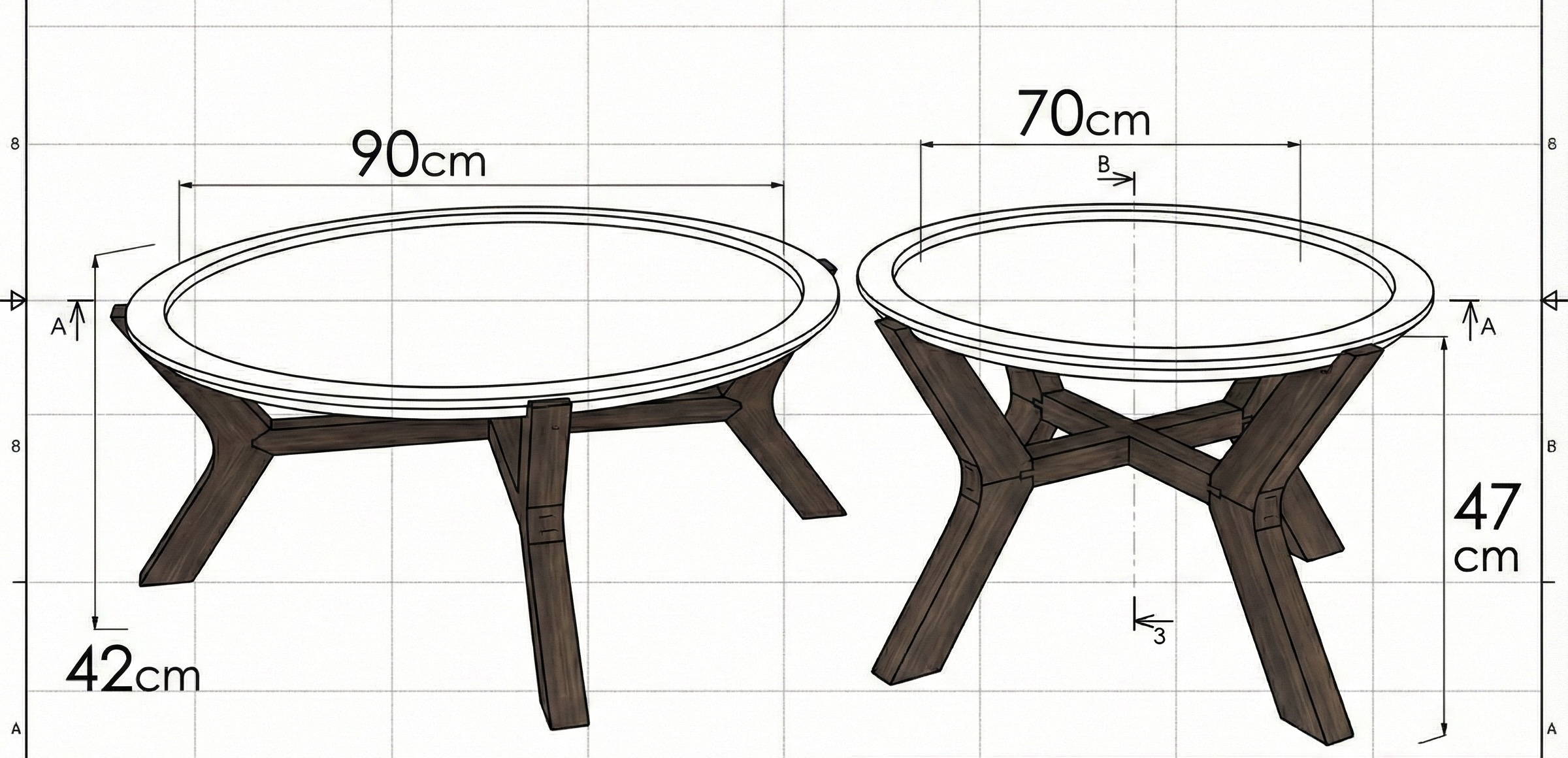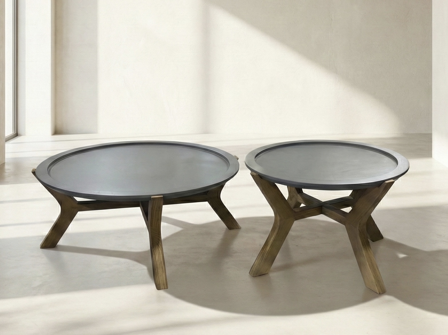 שולחן עידן הוא סט הכולל שני שולחנות נפרדים, אחד במידות 90/42 ואחד במידות 70/47 ס״מ. כל שולחן שומר על פרופורציות ברורות משלו, והסט יחד יוצר מראה מסודר והרמוני. העיצוב פשוט ונקי, כך שהשולחנות משתלבים בקלות בחלל בלי להעמיס על המקום.