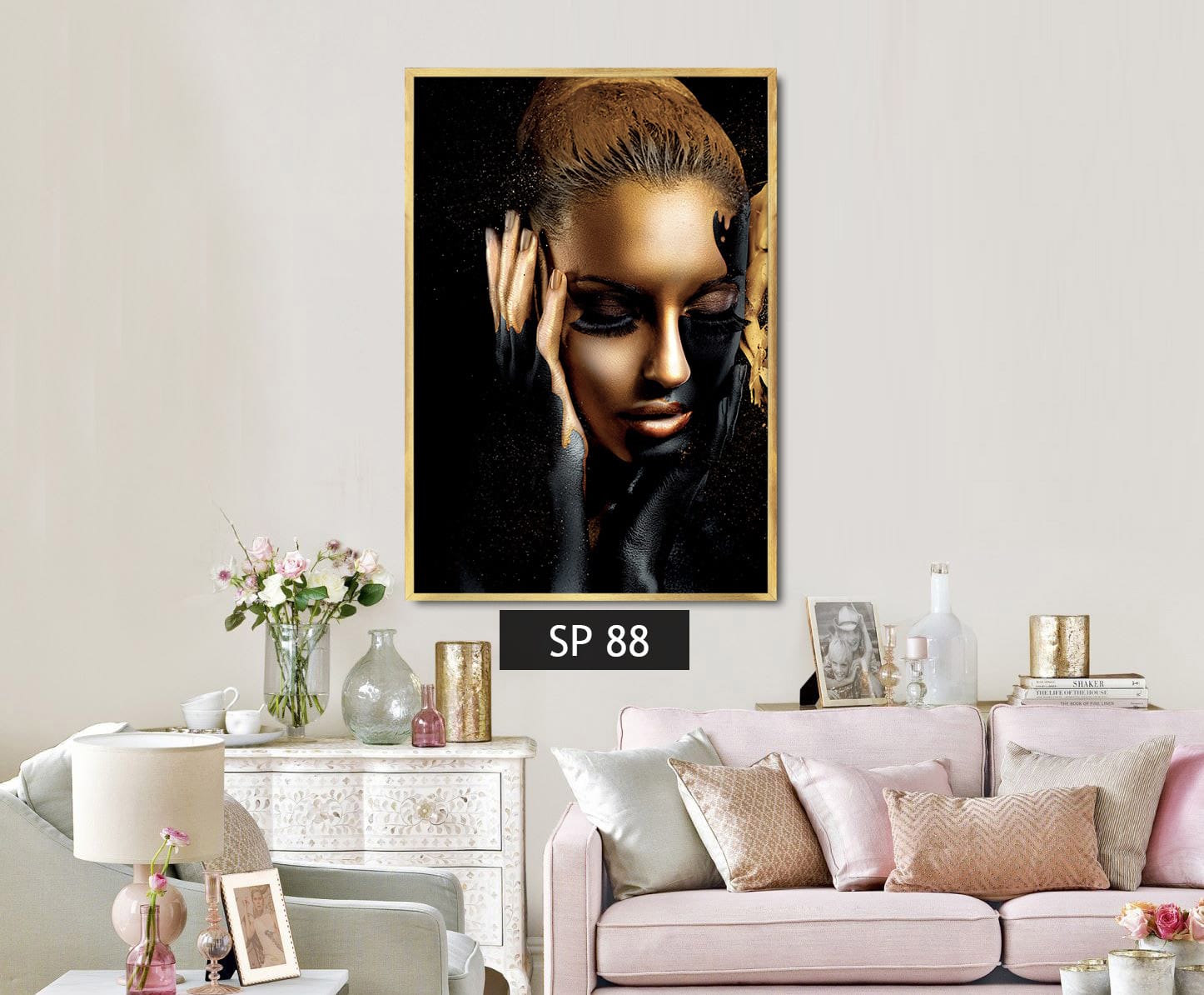 תמונת קנבס אישה בצבעים שחור וזהב SP 88