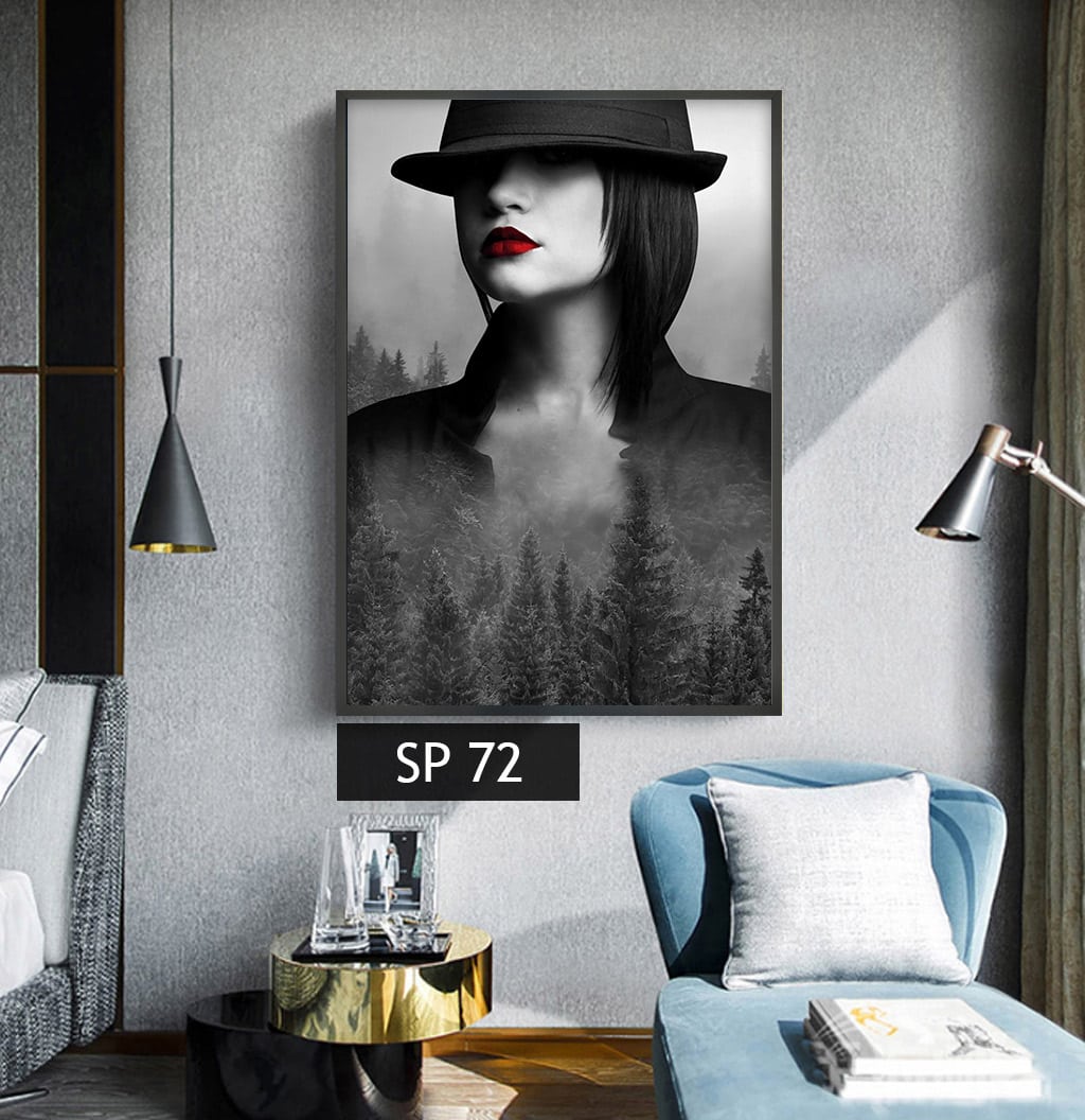 תמונת קנבס אישה ברקע יער בצבעים שחור לבן SP 72