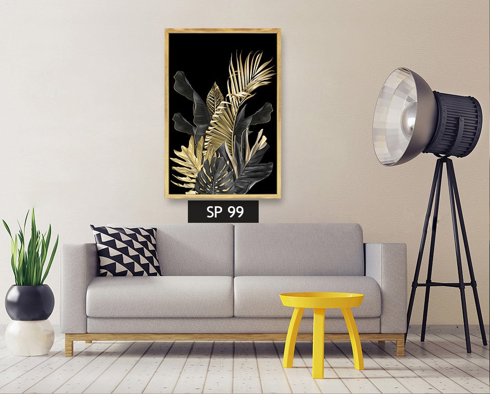 תמונת קנבס עלים בצבע זהב על רקע שחור SP 99